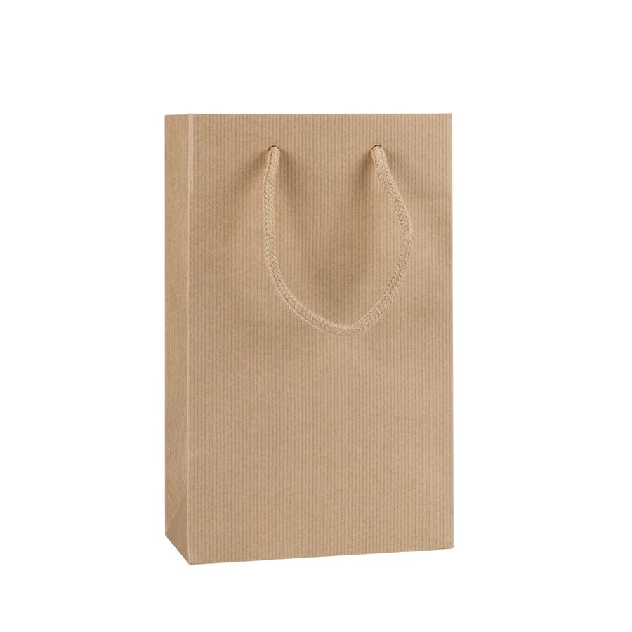 ✔ Odolné rýhované provedení zajišťuje vysokou pevnost.✔ Modré provedení dodává tašce elegantní, moderní a výrazný vzhled.✔ Ekologická varianta bez laminace vhodná i pro udržitelné značky.✔ Kroucená papírová ucha jsou pevná a pohodlná na přenášení.✔ Skvělá volba do obchodů, vinoték, farmářských prodejen i firemních sad.