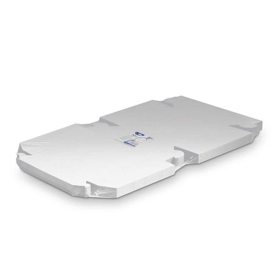 Z bílé hlazené lepenky s odklápěcím víkem.