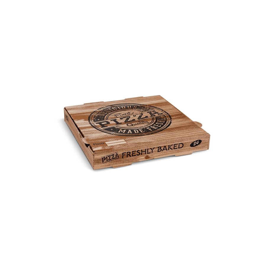Balení 100 kusů kraftových krabic na pizzu o rozměrech 24 x 24 x 4 cm. Perfektní pro balení a rozvoz menších pizz, mini pizz a calzone. Ekologický kraftový materiál.